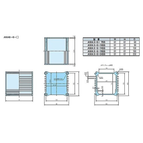 タカチ電機工業 AWA型アルミ放熱ケース AWA6−6−14SS 1個 A09K-4178