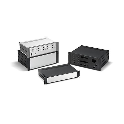 より明るい外観色に変更したため、色仕様Gの呼称がGSに変更になりました。ケースのコーナーに丸みをもたせたデザインの19インチラックケースです。 |