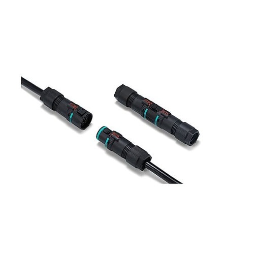 プラグ側(オス)とソケット側(メス)がセットになっている防水型の中継コネクタです。指で押すだけで簡単に接続・切り離しが可能で作業時間が短縮できます。端子数は4P、5Pから選択可能です。 |