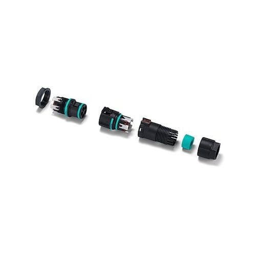 指で押すだけで簡単に接続・切り離しが可能なパネルマウント型コネクタです。パネルや筐体に取付けて挿抜する事ができます。端子数は4P、5Pから選択可能です。 |