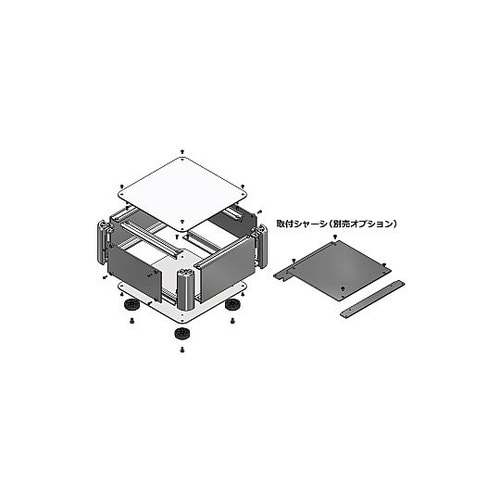 前後のパネルがビスで脱着可能でメンテナンスの容易なアルミケースです。パネルのビスは落下防止型スリーブビスで、落下・紛失がしずらく、パネルの付け外し作業が容易です。 |