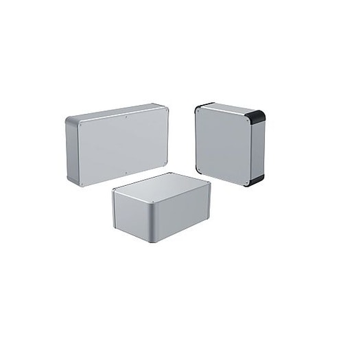 上下カバーの勘合部にシールドガスケットを付けたEMCシールド対策ボックスです。外枠4面がアルミ押出材の側板で構成されたフラットな外観で強度のあるアルミボックスです。 |