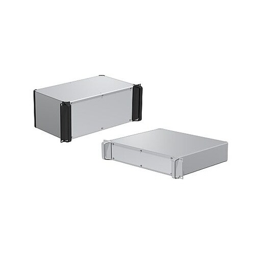 上下カバー・パネルの嵌合部にシールドガスケットをつけたEMCシールドタイプの取手付19インチラックマウントケースです。