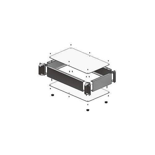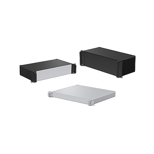 外枠4面がアルミ押出材の側板で構成された取手付の19インチラックマウントケースです。フラットな外観で強度と高級感のあるラックケースです。