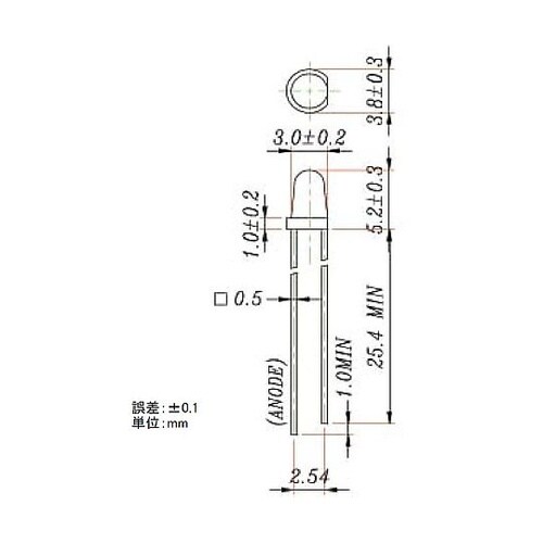 GB LED(3mm・ ピンク・3.2V・500mcd(min)) LLED−F301 1個 A09L-9268