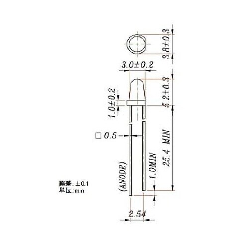 GB LED(3mm・紫・3.2V・30mcd) LLED−P301 1個 A09L-9269