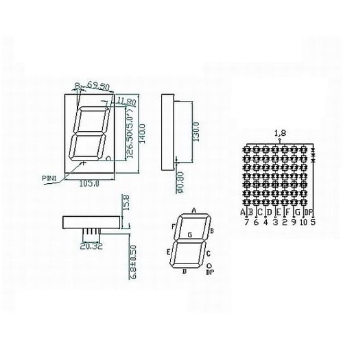 7セグメントLED 1桁 140mm×105mm 白 アノード LD50101BS−W 1個