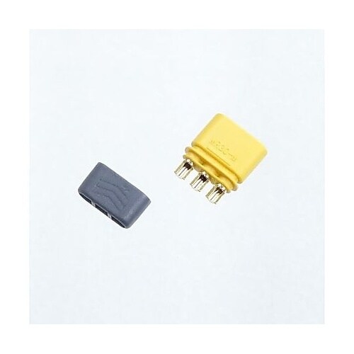 大電流が流せる3ピンワイヤコネクタ3つの接点を持ち、高電流の接続が可能なDCモーター用のプラグです。逆接続を防止する構造を採用しています。 |