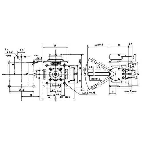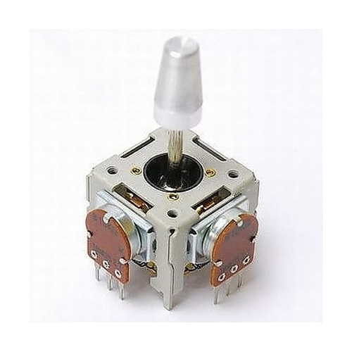 小型で高性能なジョイスティックX−Y 2基のB型ボリュームと操作レバーを組み合わせたアナログ出力のジョイスティックです。操作レバーを傾けても自動的に垂直に復帰する自動復帰タイプです。 |
