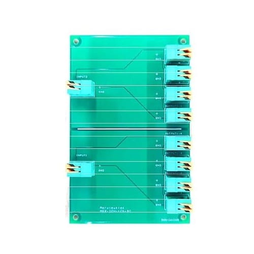 2ch−4分配回路基板入力数2に対して、出力数4×2に分配する回路です。同一入力電源を複数の回路基板に分配したり、信号源を分配する事が出来ます。複数の回路基板への電源供給、信号テスト等で活用できます。 |