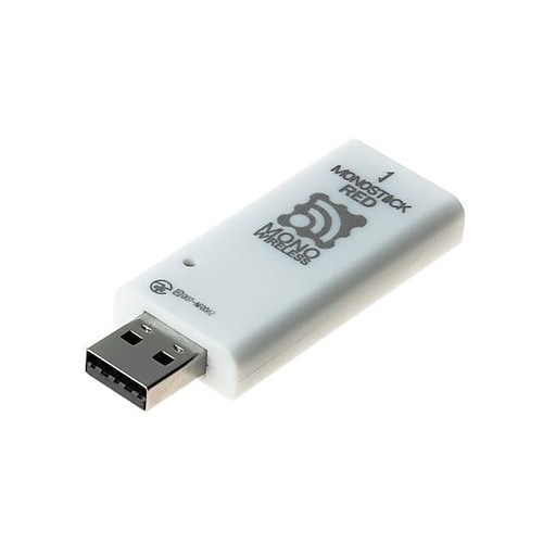 MoNoStick−モノスティックは、超小型の無線マイコンモジュールTWELITE−トワイライトとパソコンなどとの間で無線通信をするためのUSBデバイスです。パソコンなどのUSBに接続して使用します。 |