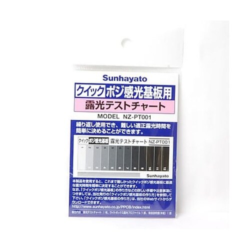 このチャートをクイックポジ感光基板に焼き付け、現像するだけで、適正露光・露光不足・露光オーバーがひと目で分かります。露光不足・露光オーバーによる失敗が劇的に減少します。 |