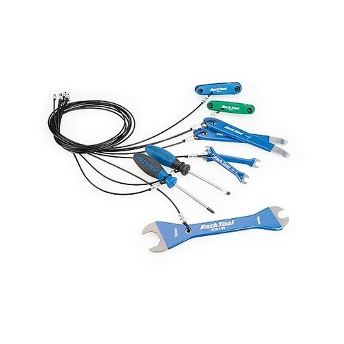 屋外での使用に合わせて設計された工具ステーション。各工具はワイヤーに繋がっており、店舗外に設置することで営業時間に関わらず各自で一般的な調整や応急処置が可能です。 |