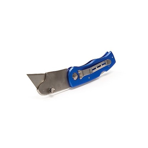 折りたたみ式のナイフです。ナイフを取り出したとき、折りたたんだときにそれぞれの位置で固定するストッパー付。 |