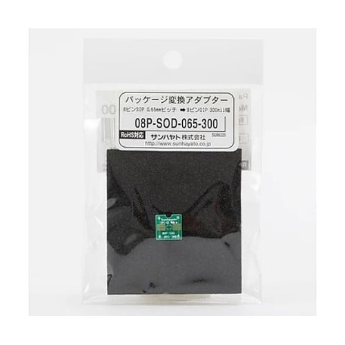 SOPパッケージ(8ピン0.65mmピッチ)を2.54mmピッチのDIP型に変換し、ユニバーサル基板上で使用できるようにするアダプターです。はんだ付けをしてお使いください。 |
