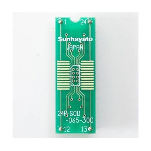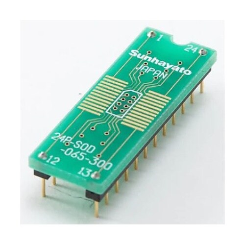 SOPパッケージ(24ピン0.65mmピッチ)を2.54mmピッチのDIP型に変換し、ユニバーサル基板上で使用できるようにするアダプターです。はんだ付けをしてお使いください。 |