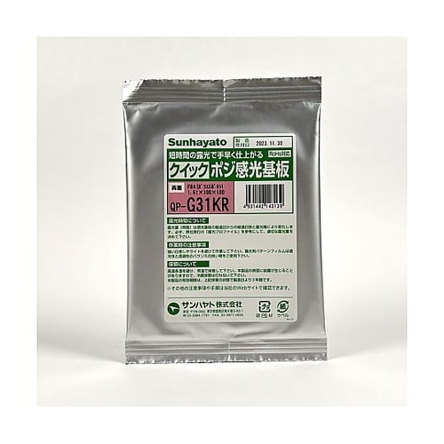 プリント基板作成用クイックポジ感光基板プリント基板を手軽に作製することができ、試作実験や小ロット作製に便利な感光基板です。露光時間が従来の感光基板(NZシリーズ)の約半分になりました。