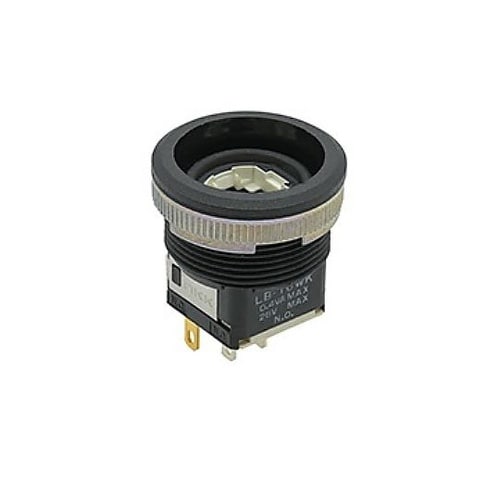 はんだ端子形(金メッキ接点):単極双投 | 操作部形状:丸形 | 本体の色:黒 | パネルシールタイプ(丸形ねじ取付):IEC529 IP65適合 |…