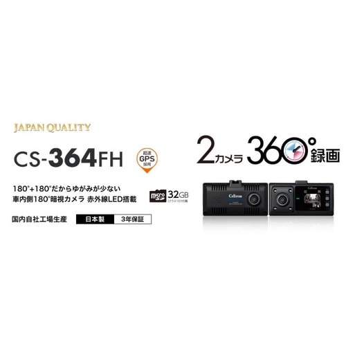 180°+180°360°録画2カメラだからゆがみが少ないドライブレコーダーです。 |
