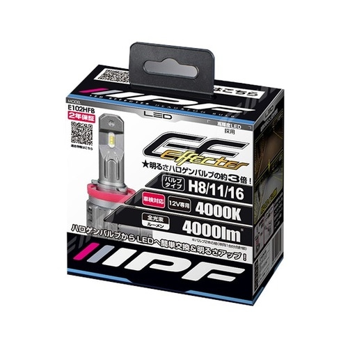 E102HFB ヘッドライト/フォグランプ用LEDバルブ(ドライバーユニット内蔵 オールインワンモデル) 4000K 12V25W 4000lm HB8/11/16 車検対応 2個入り E102HFB