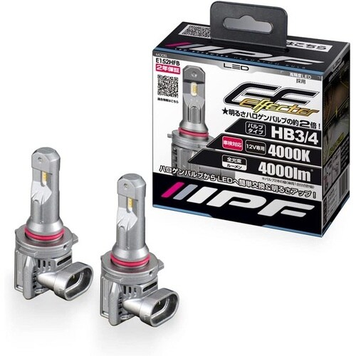 E152HFB ヘッドライト/フォグランプ用LEDバルブ(ドライバーユニット内蔵 オールインワンモデル) 4000K 12V25W 4000lm HB3/HB4 車検対応 2個入り E152HFB