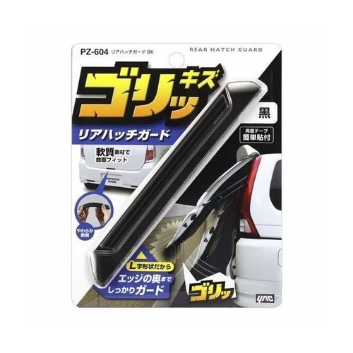 壁などにぶつけやすい、リアハッチを傷から守る。エッジの奥まで完全ガードするL字形状です。 |