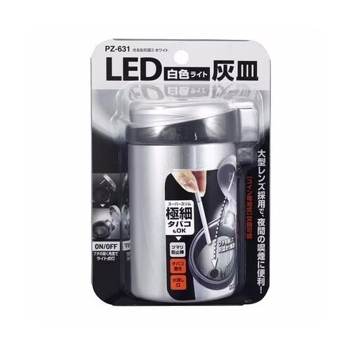 夜間の喫煙に便利なLED照明付きの灰皿。たばこ置きや、差し込むだけで消化できる1アクション火消し口付き(スーパースリムタバコにも対応)です。 |