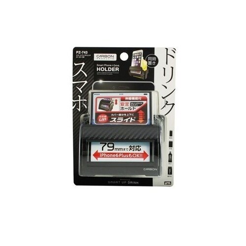 スタイリッシュなカーボン調。ドリンクは600ml/500mlペットボトル(角、丸)、500ml紙パック、350ml缶、細缶を置くことができます。 |