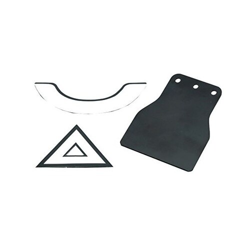 原付2種車両用のステッカー、2種類(フロント用白帯ステッカー/リア用△ステッカー)とリア用ステッカーを貼り付けるプレートのセットです。 |