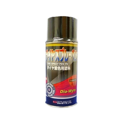 ひび割れ、剥がれに強いタイヤに強密着するタイヤ專用特殊塗料です。文字を切り抜いた厚紙などをあててスプレーすると、レースタイヤのように仕上がります。 |