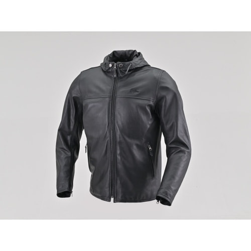CEプロテクターフル装備。しなやかシープスキン、フーディレザージャケット。しなやかなシープスキンを採用した着心地のよいフーディレザージャケット。