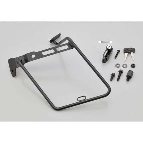 サドルバッグの安定性を高め巻き込みを防ぐサポートバー。ヘルメットホルダー付きのバッグサポート。 |
