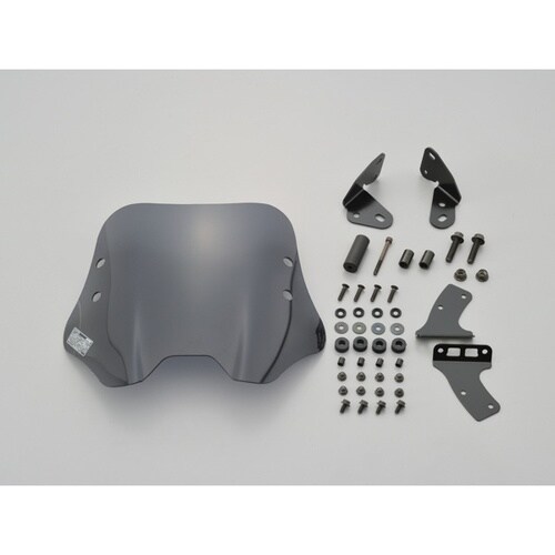 スタイリッシュなエアロフォルムのウインドシールド。ポリカーボネート(厚さ3mm)を採用。 |