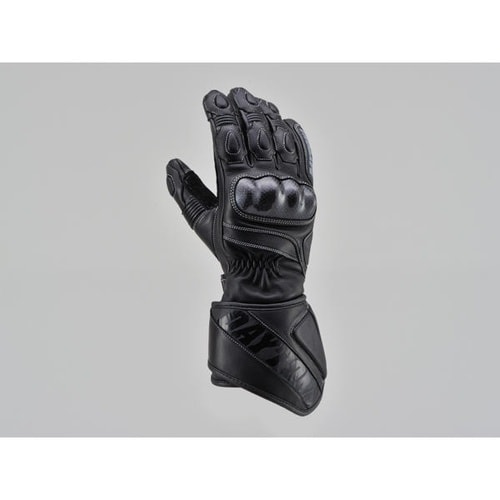 スポーツツーリングに最適。ロングタイプのレーシーなグローブ!表裏の革厚を使い分け、手の甲や小指は厚く、手の平は薄くし安全性とフィット感を両立。