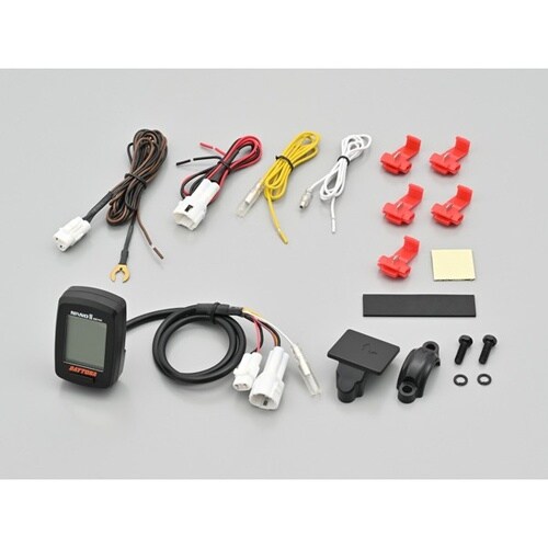 バーグラフ表示は回転数を任意で設定可能なシフトアップインジケーターとして使用可能。純正電気式スピードメーター車に装着可能。(メーターギア&デイトナ製信号変換ケーブルは使用不可) |