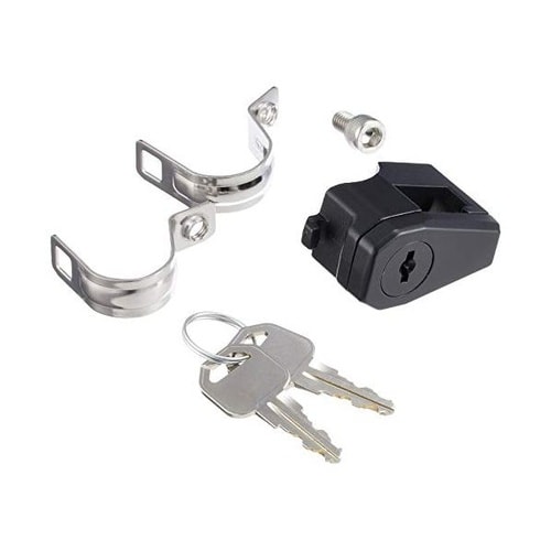 ハンドル用ヘルメットロック!純正ヘルメットロックが無い車両や、バッグ等で使えない車両にオススメ。ステーは標準ハンドル用、インチハンドル用どちらも付属しています。 |