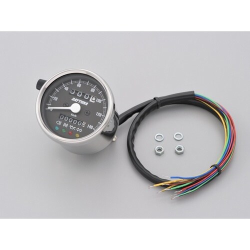 旧車カスタム素材の定番、復活!!クラシカルなパネルデザインで140km/h表示のスピードメーター。