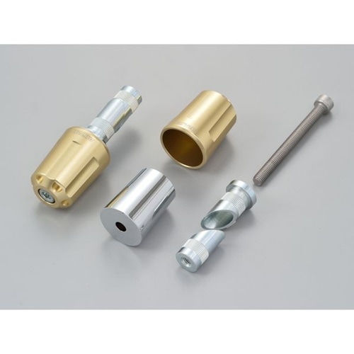 真鍮製の防振ウエイトを内蔵したバーエンド。ハンドルの不快な振動を低減。外側はアルミ削り出しアルマイト仕上げ。 |