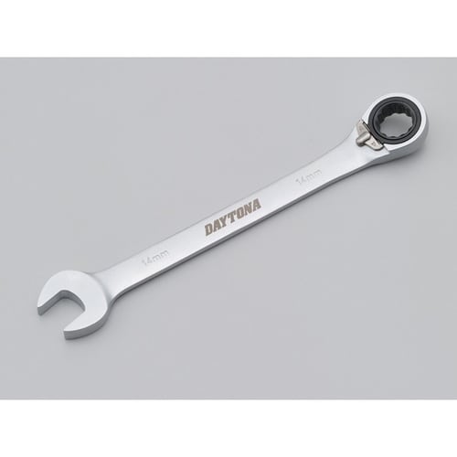 切替式ギアレンチ14mm。切り替えレバーで正転・逆転の切り替えができるラチェット式メガネレンチ。 |