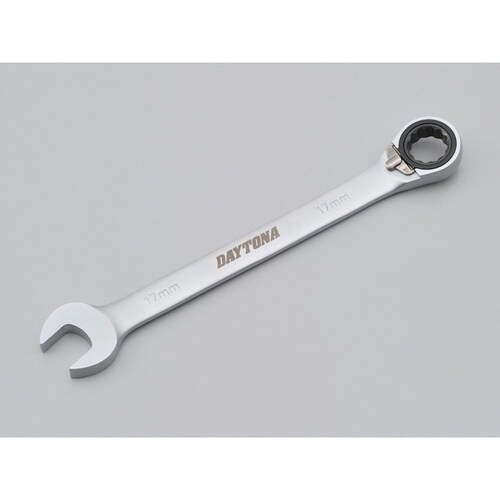 切替式ギアレンチ17mm。切り替えレバーで正転・逆転の切り替えができるラチェット式メガネレンチ。 |