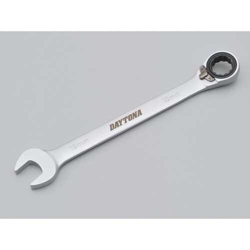 切替式ギアレンチ19mm。切り替えレバーで正転・逆転の切り替えができるラチェット式メガネレンチ。 |
