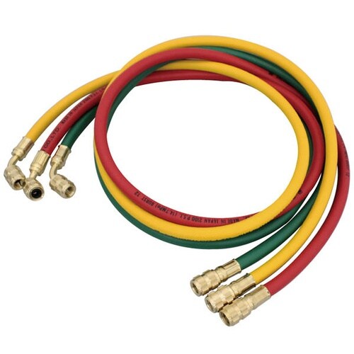 R134A自動車エアコンガス用チャージホース。HFC−134a自動車用チャージングホースの3本セット(赤・黄・緑)