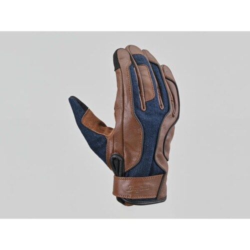 しなやかな山羊革とストレッチデニムを組み合わせた、カジュアルなショートグローブ。反射材を使用した独特なパイピング、甲側にプロテクターがないシンプルなデザインです。 |