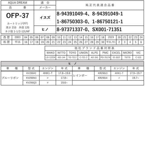 AD−OFP−37 PLATINUM オイルフィルター イスズ・ヒノ車用(代表純正番号:8−94391049−4等) ※2個以上から注文可能(販売価格は1個単位の価格)