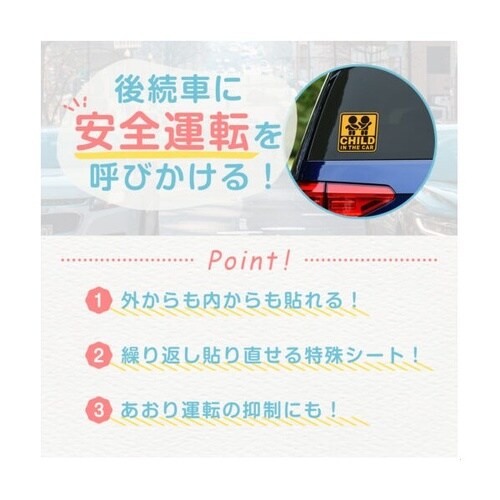 WA121 車用ステッカー セーフティーサイン「CHILD IN THE CAR」 内貼り外貼り兼用仕様 貼り直し可能 ※2個以上から注文可能(販売価格は1個単位の価格)
