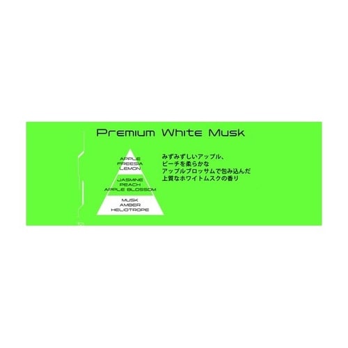 スモークデオテクノロジーを採用した消臭芳香剤です。プレミアムホワイトムスクは、みずみずしいアップルやピーチを柔らかなアップルブロッサムで包んだ上質なフルーティフローラルの香りです。 |