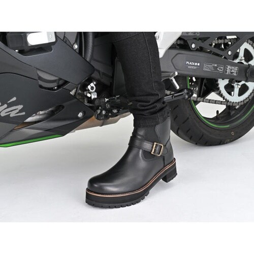 シューレスでしっかりフィットするライディングサイドゴアブーツです。極厚ソールで足つき性を考慮し、くるぶしパッド・シフトパット内蔵。3段階調整ベルトで脱ぎ履き簡単、教習所指定項目もクリア。 |
