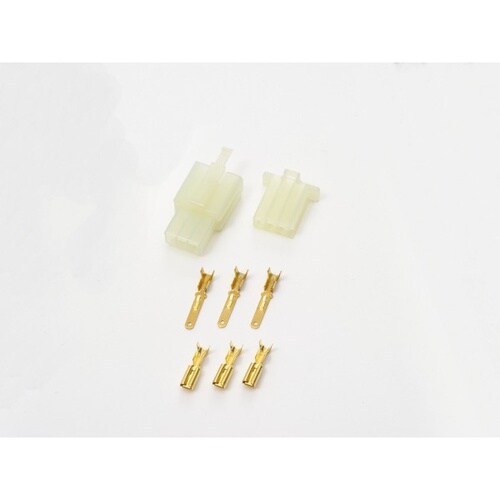 110型3極コネクターセットです。カラーはナチュラルで、コネクター(オス・メス)各1個、端子(オス・メス)各3個が付属します。 |