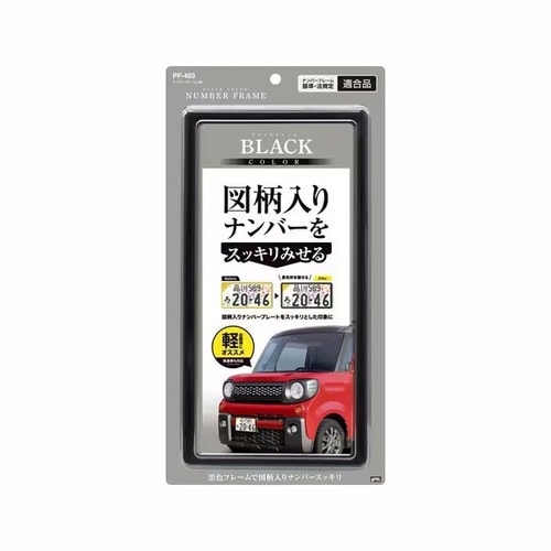 図柄入りナンバーの黄色枠を隠せるフレームです。普通車のフロントや軽自動車の前後に対応し、改正保安基準(2016年4月1日)適合品です。 |