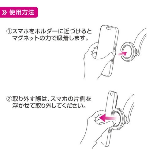 強力マグネットでスマホを固定できるホルダーです。ロングアームで自在に調整可能。吸盤は水洗いで再使用でき、安定設置が可能です。 |